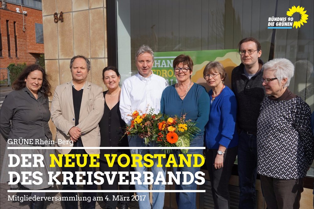 Der geschäftsführende Vorstand, bestehend aus der Vorstandssprecherin, dem Vorstandssprecher und der Kassiererin, wurde von den Mitgliedern für weitere zwei Jahre in seinem Amt bestätigt. Die beiden Vorstandssprecher Doris Rehme (Rösrath) und Jürgen Langenbucher (Leichlingen) wurden jeweils einstimmig gewählt. Ursel Klein (Wermelskirchen), die langjährige Kassiererin des Kreisverbands, erhielt 91 Prozent der Stimmen.