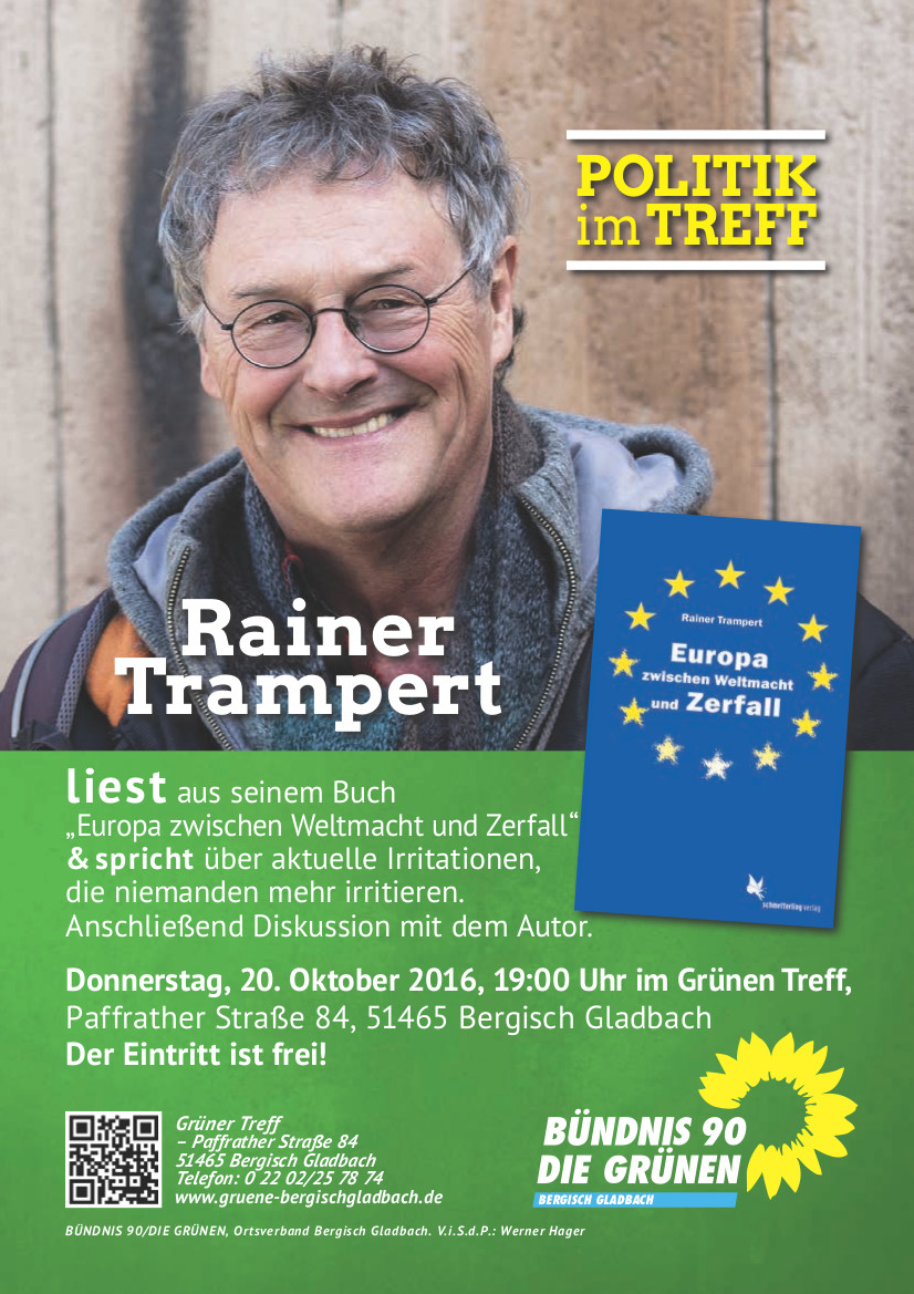 Rainer Trampert liest aus seinem Buch "Europa zwischen Weltmacht und Zerfall" und spricht über Irritationen, die niemanden mehr irritieren.