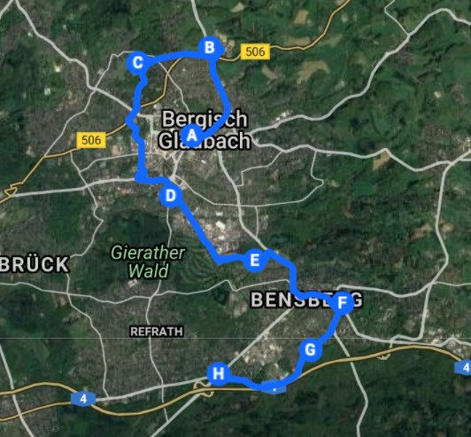 Die circa 13 Kilometer lange Tour führt vorbei an verschiedenen Stationen, unter anderem in Hebborn, Peterskaule, Sträßchen/Siefen, dem Bahndamm, dem Gewerbegebiet Zinkhütte und der Brüderstraße in Frankenforst. Außerdem wird es einen Zwischenstopp an einer von den GRÜNEN organisierten Erfrischungsstation in der Bensberger Schloßstraße geben.