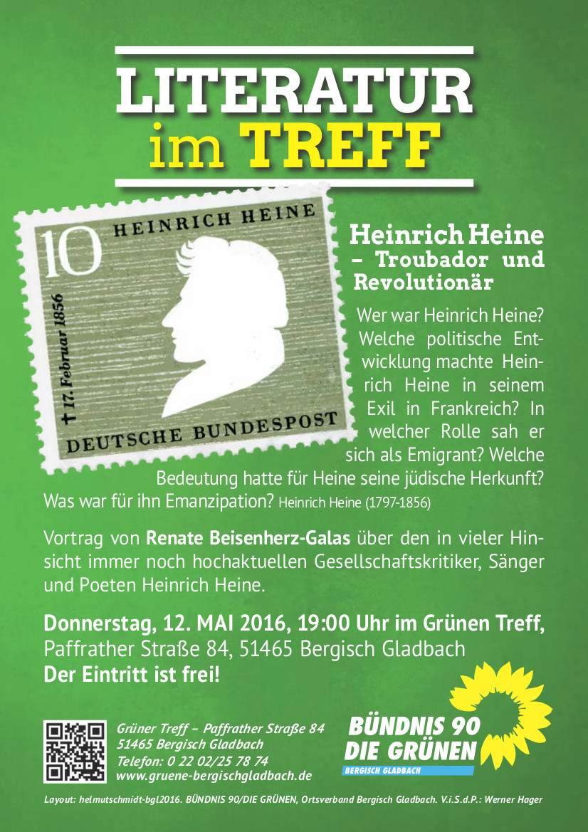 von Renate Beisenherz-Galas über den in vieler Hinsicht immer noch hochaktuellen Gesellschaftskritiker, Sänger und Poeten Heinrich Heine
